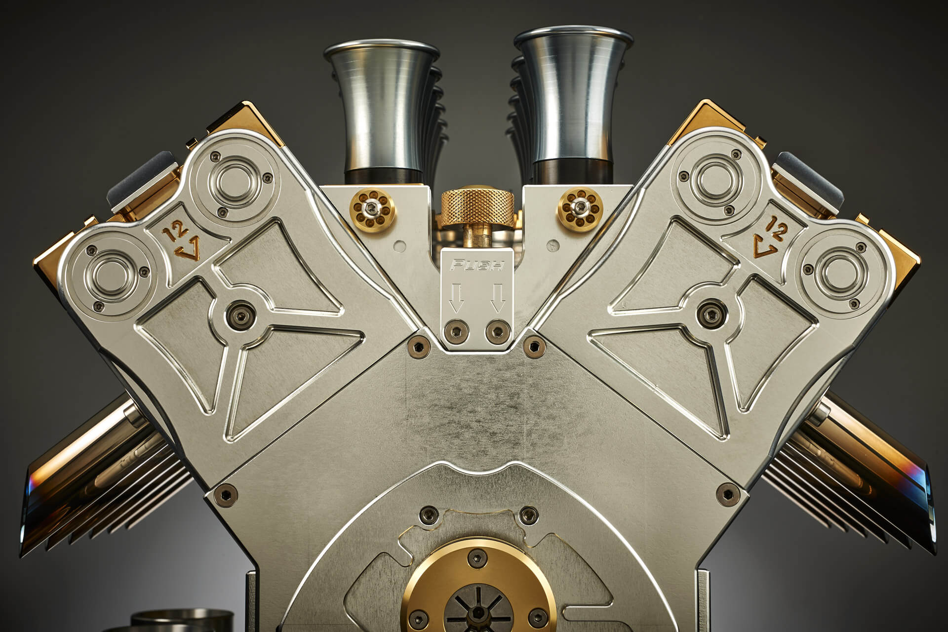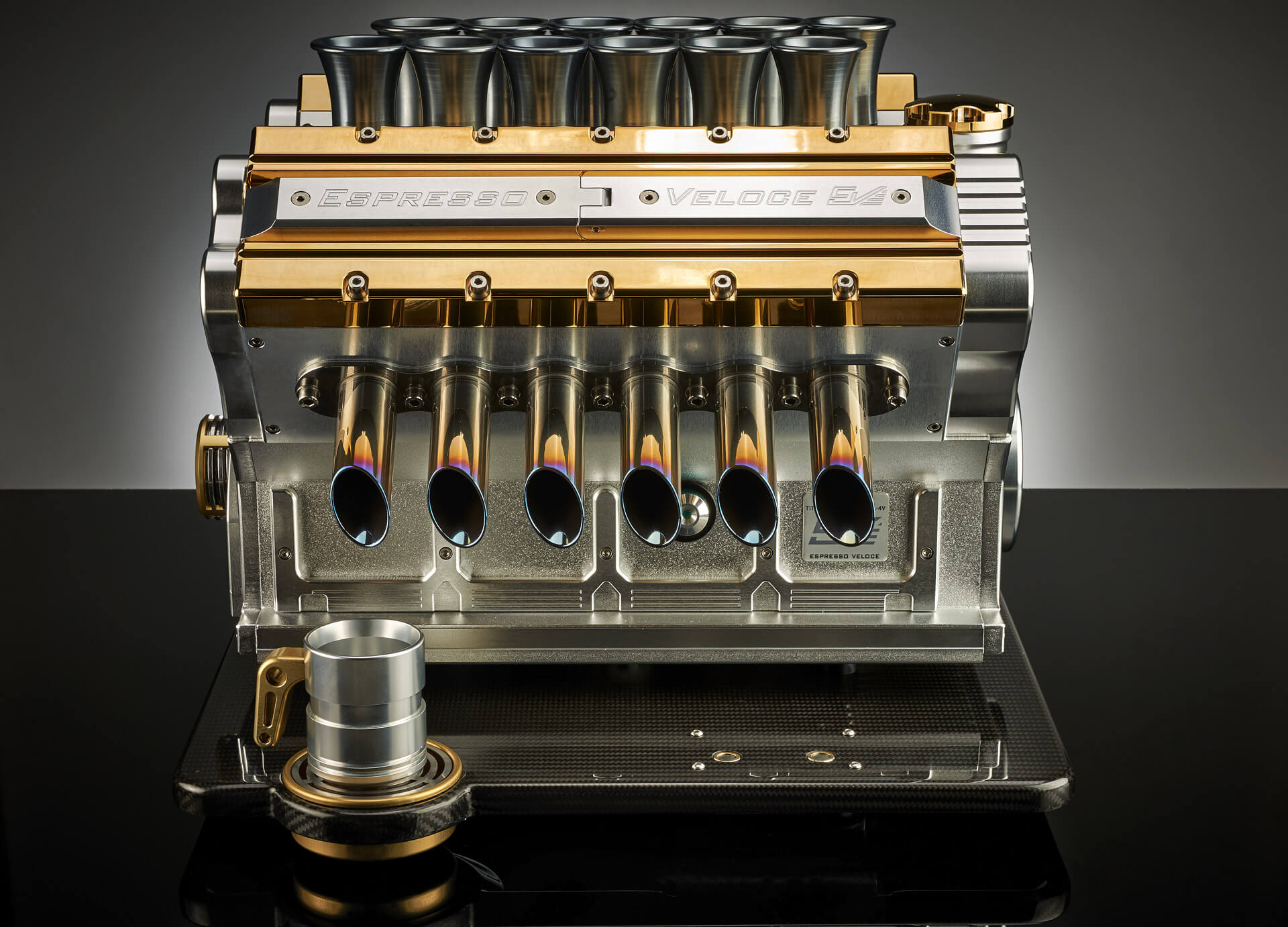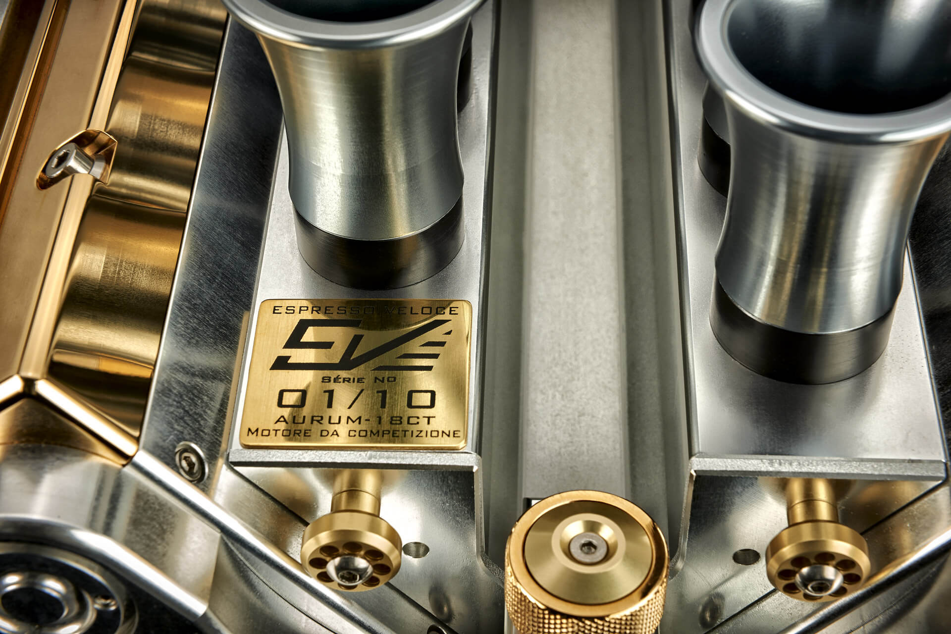 The AURUM 18CT Espresso Maker is a stunning tribute to the golden age of Formula One racing. Designed to emulate the iconic V12 engines that defined a thrilling chapter of motorsport history, this limited-edition masterpiece brings together luxury, art, and engineering innovation. Crafted in Italy with meticulous attention to detail, the espresso maker reflects the legacy of legendary engineers like Colombo, Lamperdi, Alfieri, and Forghieri, who pushed the boundaries of high-performance engineering for iconic brands including Ferrari, Alfa Romeo, Lamborghini, and Maserati. With this creation, Espresso Veloce captures the spirit of championship-winning machines in a functional work of art.