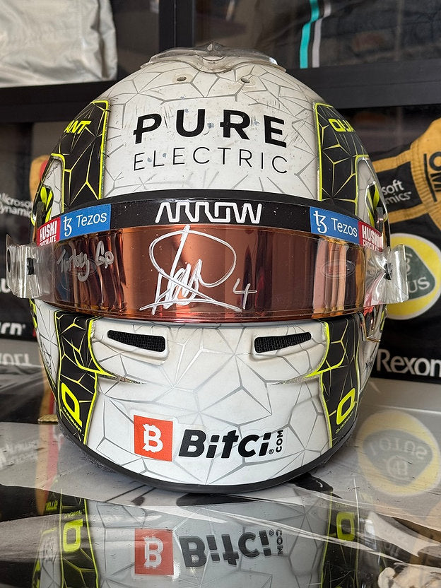 With its striking design and authenticity, this special edition helmet encapsulates the excitement of the 2021 F1 season. A true masterpiece of memorabilia, it commemorates Lando's performance and dedication, offering an unmissable opportunity to own an exclusive, signed artifact from the world of motorsport.