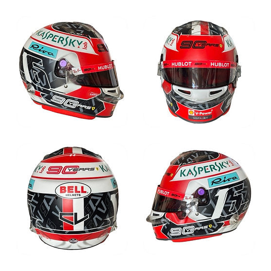 The Bell HP77 race helmet is an original piece worn by Charles Leclerc during the 2019 German Grand Prix as part of his remarkable debut season with Scuderia Ferrari.