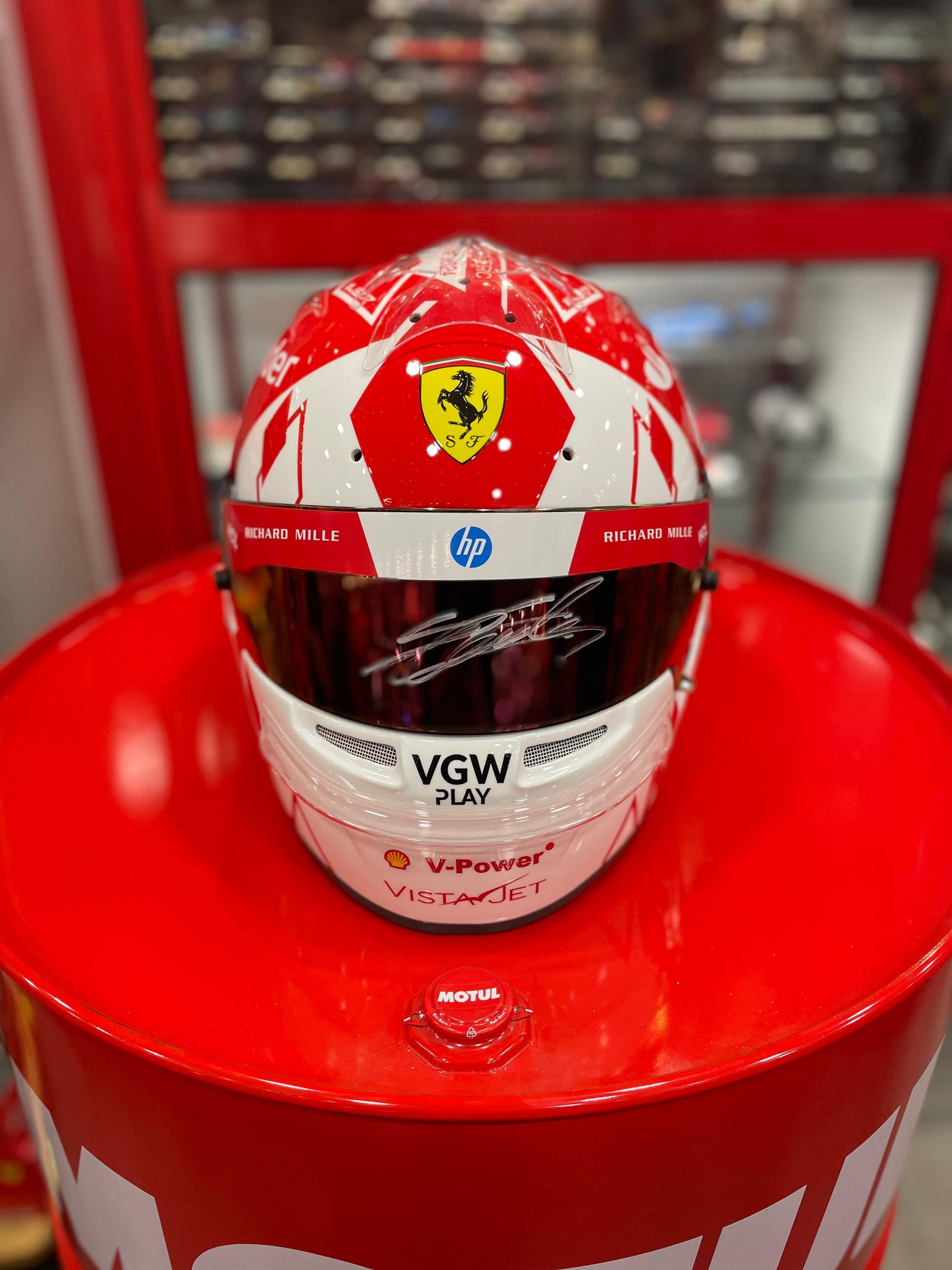 What sets this piece apart is Leclerc’s authentic signature on the visor, making it a treasured collector’s item and a tribute to one of his greatest career milestones.