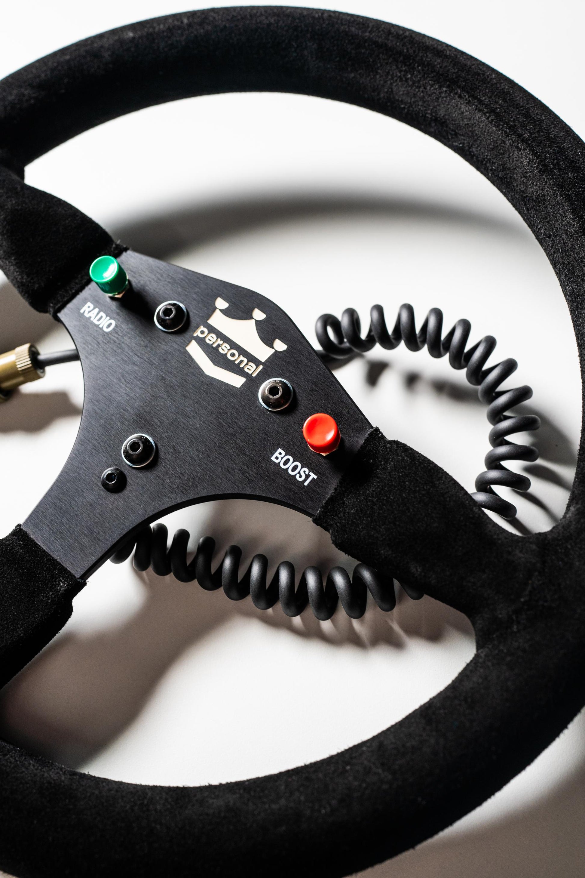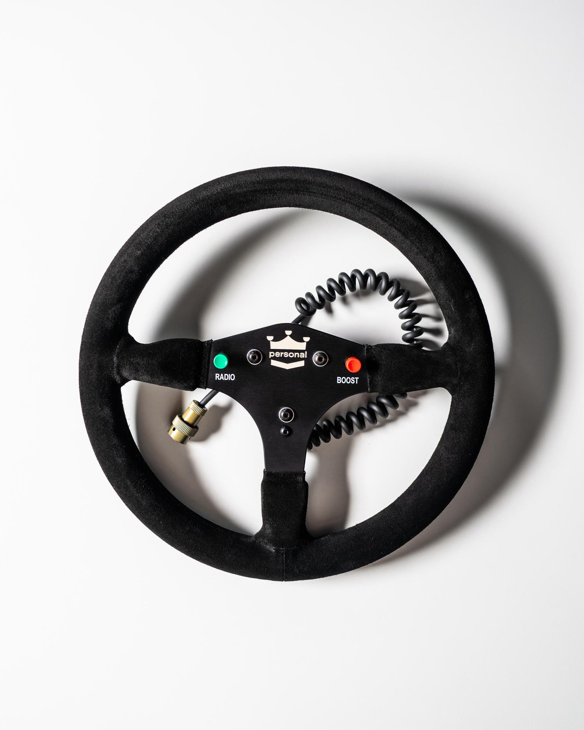 Manufactured in Tradate, Italy, at the original Nardi factory, this 290mm wheel is built to the exact specifications used by the 1988 McLaren race team. It features authentic ‘Boost’ and ‘Radio’ buttons, a master connector and cable, de-bossed Personal branding, and is wrapped in the finest Italian suede using a stitchless, bonded assembly—just as it was originally designed. Each wheel is housed in a custom display box and includes a pre-threaded wall-mount hook for effortless mounting and display.