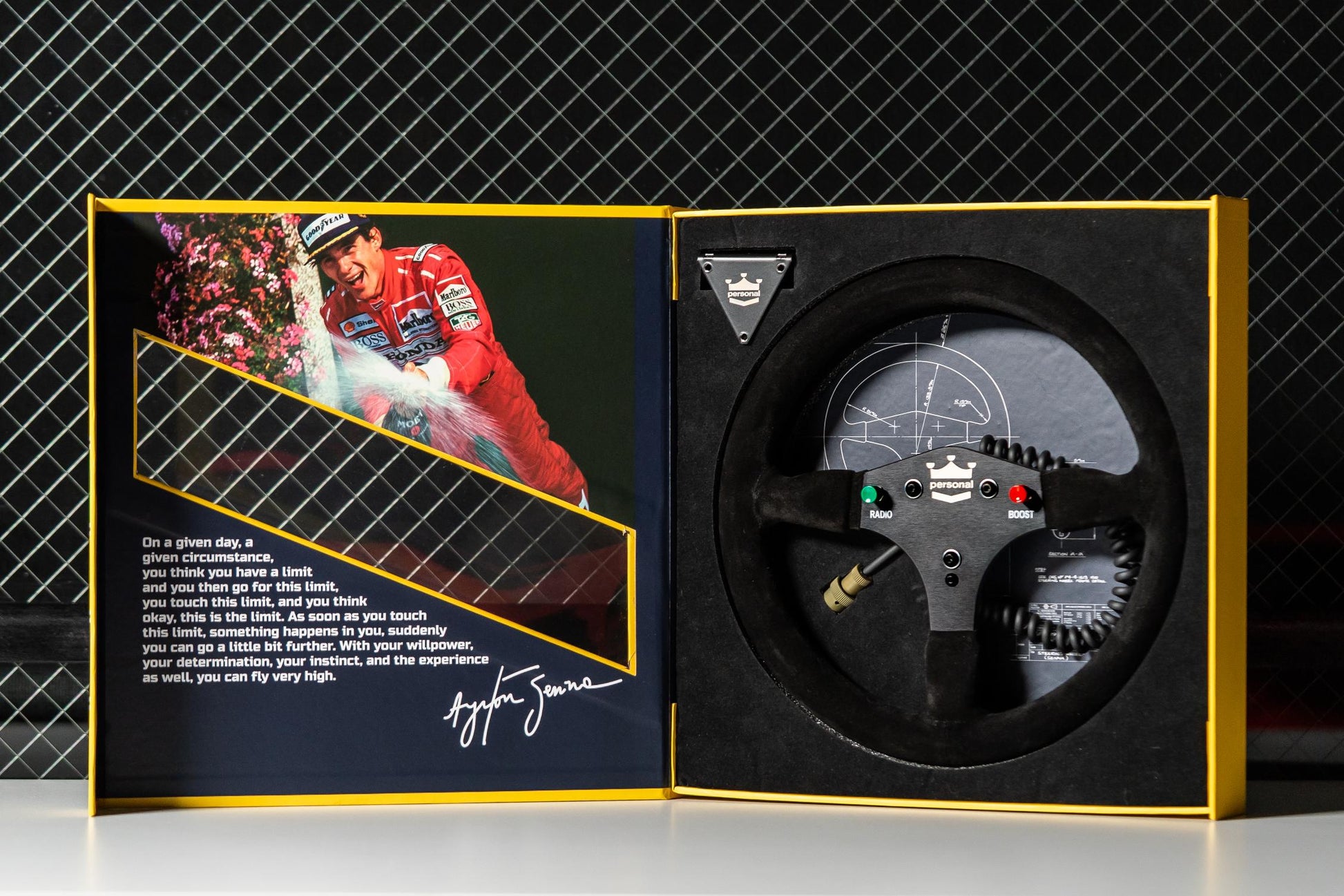 This collector’s edition is limited to just 300 units, each individually engraved with a tamper-proof serial number (#/300) and accompanied by a certificate of authenticity from Nardi-Personal S.p.A. To commemorate Senna’s legacy, we’ve partnered with legendary motorsport photographer Keith Sutton and LAT Images to include an officially licensed, iconic image of Ayrton Senna celebrating his victory at Spa-Francorchamps.