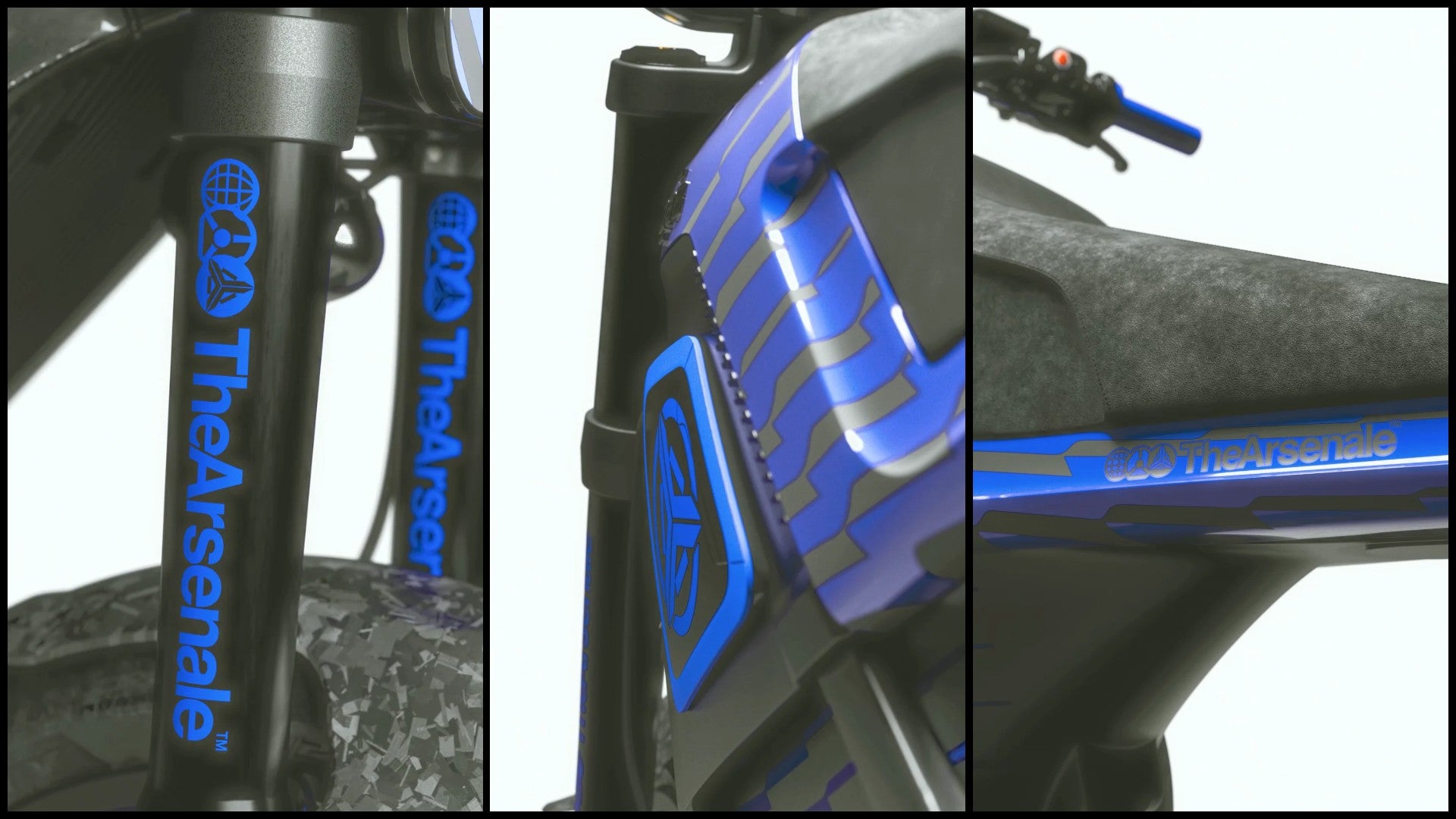 Handcrafted in France, the DAB 1⍺ x TheArsenale highlights the very best of French artistry combined with Monaco's bold sophistication. Finished in a stunning custom Pacific Blue gloss with sharp white accents crossing its carbon fiber frame, the design brings a fresh yet timeless energy. The satin black frame, CNC-machined parts, and blue highlights create a harmonious contrast, emphasizing the bike’s sculptural beauty. Every detail is meticulously engineered to balance power, performance, and aesthetics, while serving as a testament to artisanal expertise.