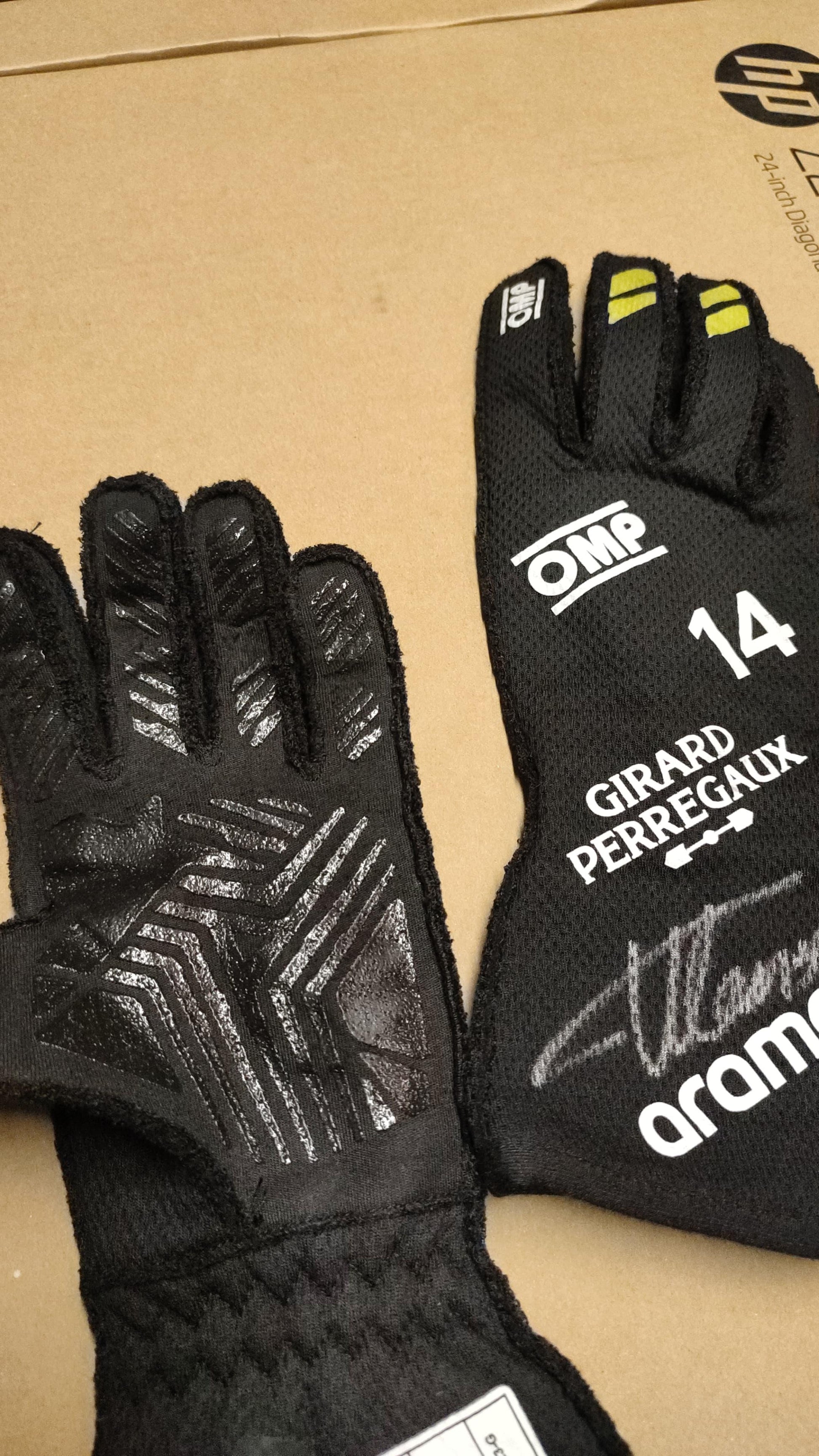 EXCLUSIVE FERNANDO ALONSO ASTON MARTIN 2024 RACE-USED SIGNED GLOVES
