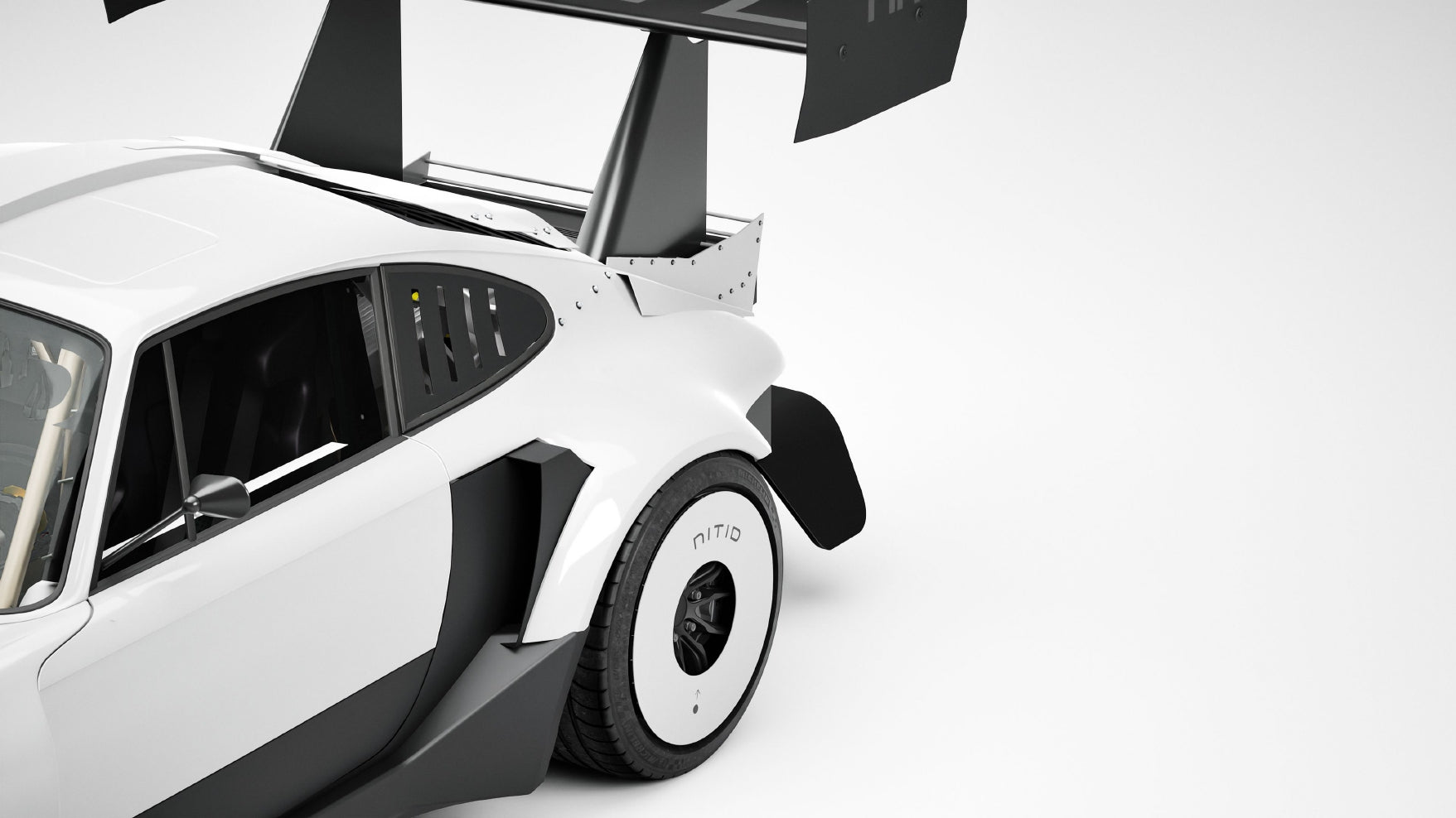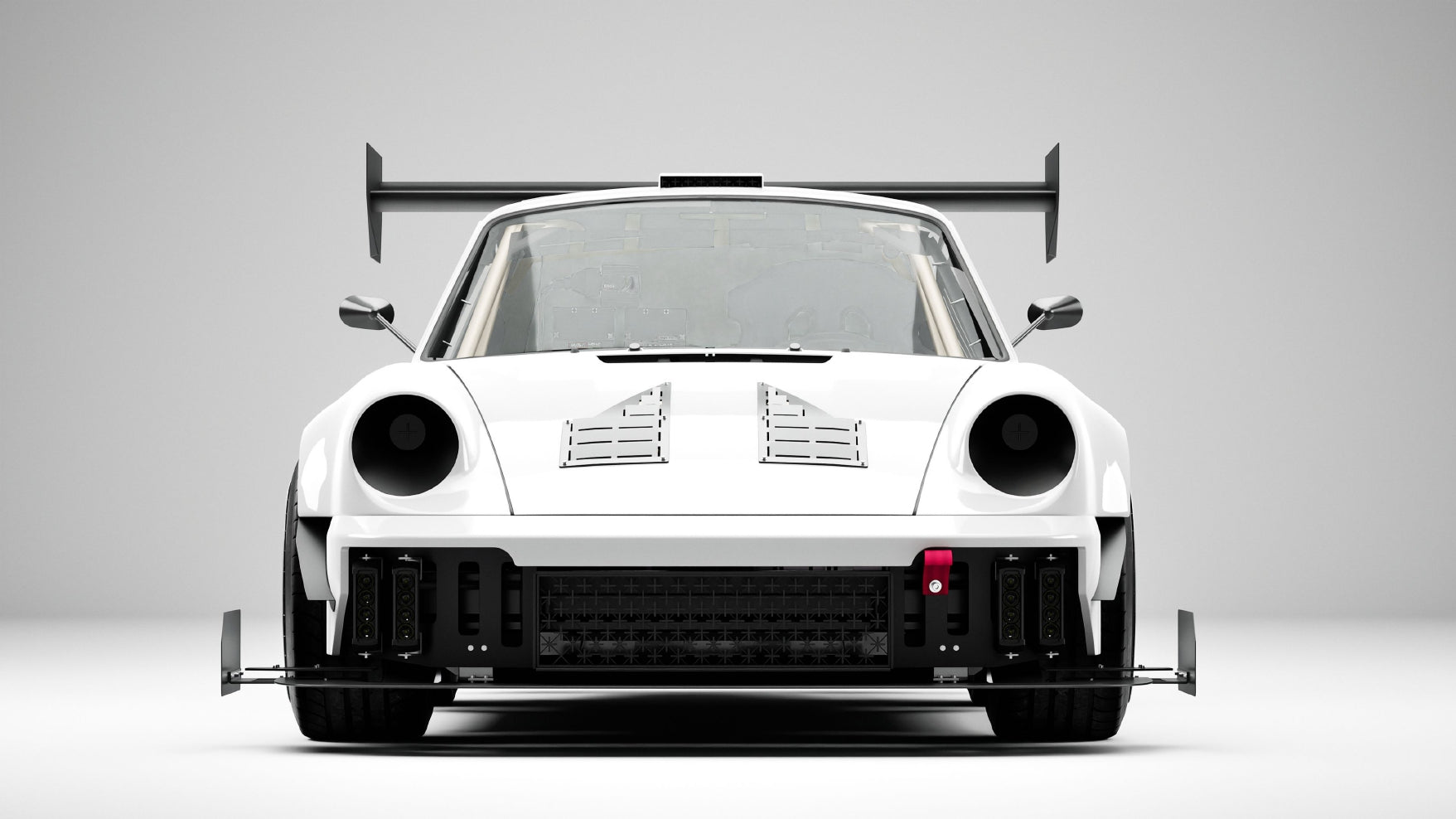 Trinity’s design is pure precision. Every aerodynamic vent, every line, and every carbon detail exists for performance. The wide stance, oversized rear wing, and bespoke front splitter speak the language of speed and control. This is e-adaptation at its most dramatic—classic lines reinterpreted as a race-ready icon for a cleaner tomorrow.