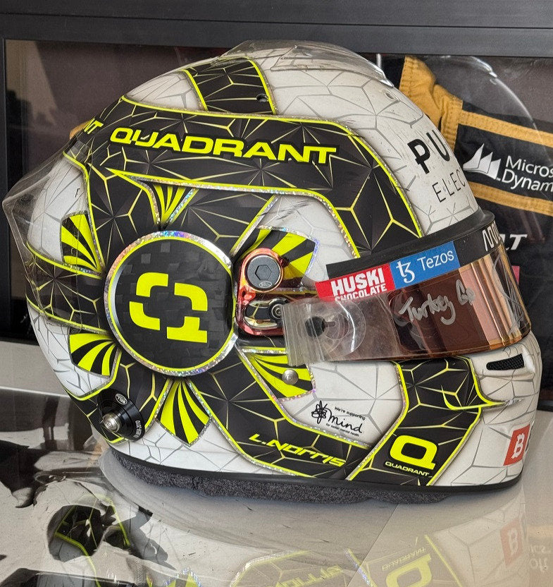 With its striking design and authenticity, this special edition helmet encapsulates the excitement of the 2021 F1 season. A true masterpiece of memorabilia, it commemorates Lando's performance and dedication, offering an unmissable opportunity to own an exclusive, signed artifact from the world of motorsport.