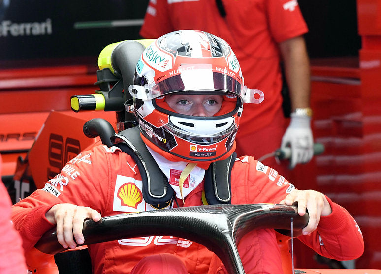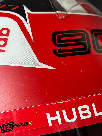 The Bell HP77 race helmet is an original piece worn by Charles Leclerc during the 2019 German Grand Prix as part of his remarkable debut season with Scuderia Ferrari.