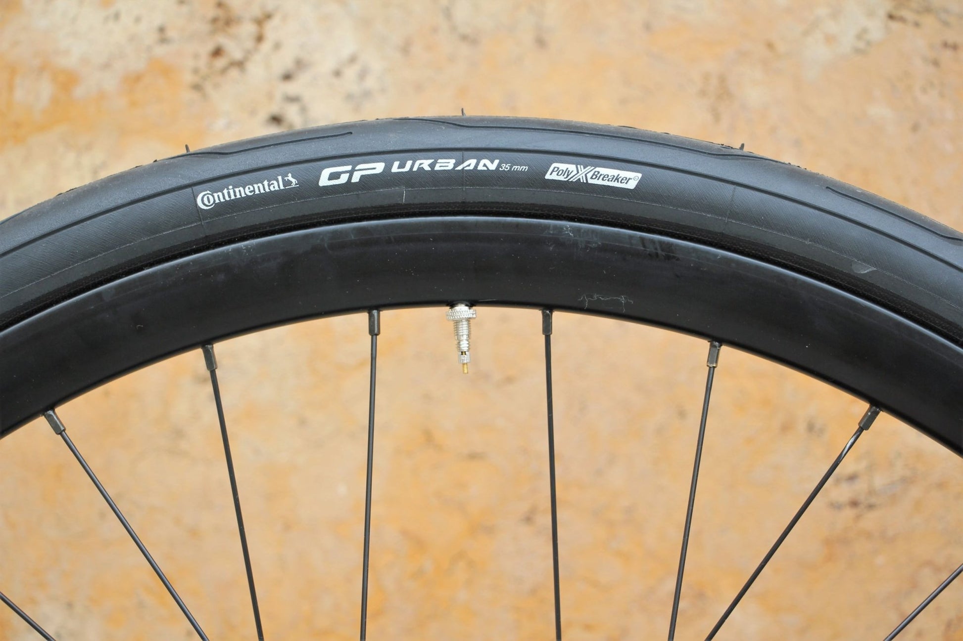 - Grippy Continental tires with puncture protection & black reflective stripe